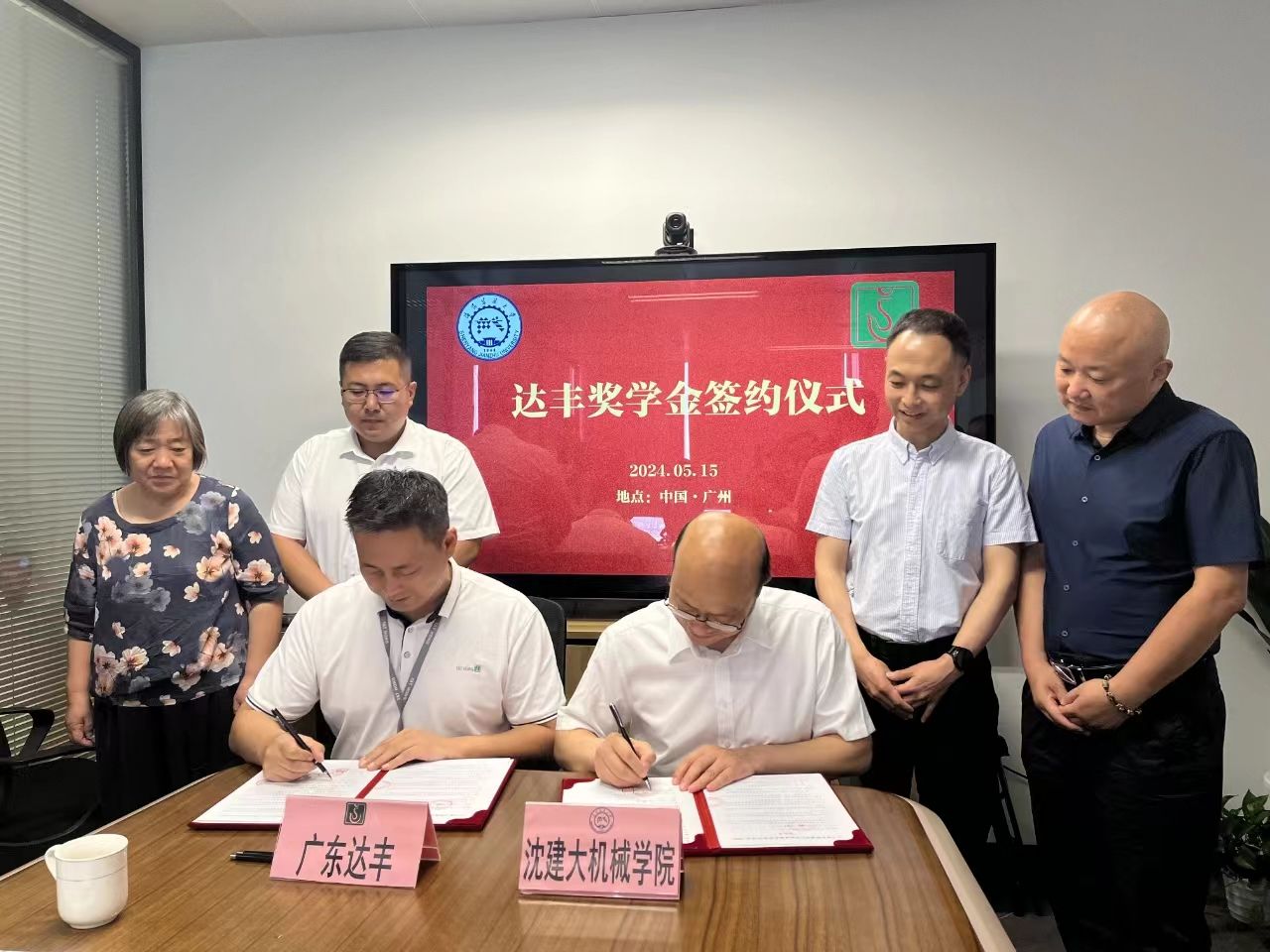 5月15日,万象城娱乐awc线路在广州与广东达丰机械工程有限公司举行“达丰奖学金”签约仪式。万象城娱乐awc线路院长李颂华、副书记兼副院长田野、广东达丰机械工程有限公司总经理于春雷、相关领导参加活动。